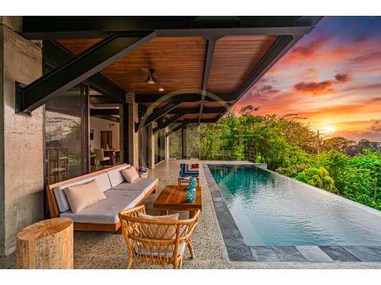 La vida al aire libre se perfecciona con una elegante piscina infinita que parece fundirse con la vegetación del bosque tropical, creando el escenario perfecto para cautivadoras puestas de sol. Amplios balcones modernos, con barandillas de cristal y elegantes asientos, ofrecen un rincón privado para disfrutar de la serenidad del entorno y las espectaculares vistas. Imagine relajarse en una lujosa bañera al aire libre , rodeado de naturaleza mientras el sol se esconde tras el Pacífico.